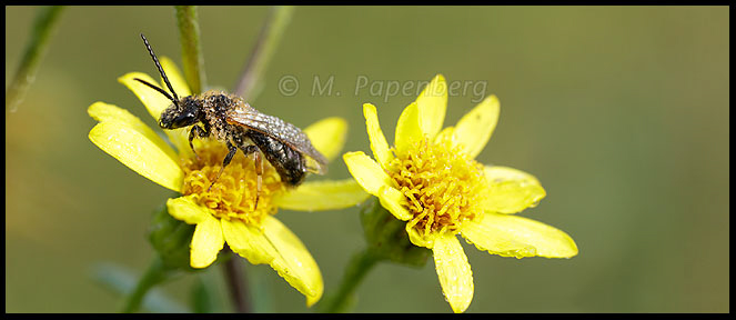 m418b Greiskraut mit Wildbiene im Morgentau (f)