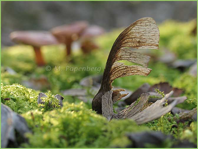 fdw-y89 - Ahorn-Samen und Pilze auf einem Stubben