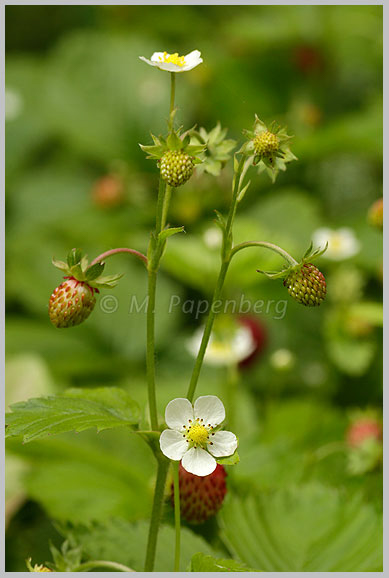 192i Wald-Erdbeere, Blüten und Früchte